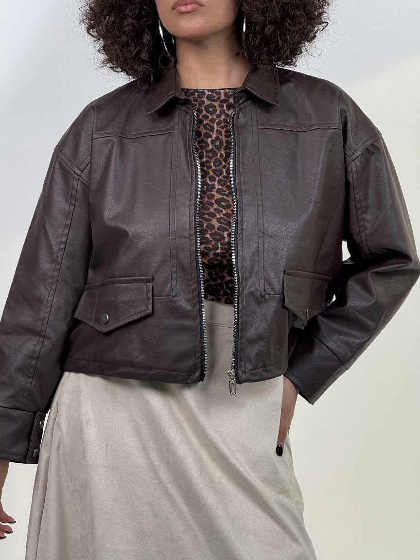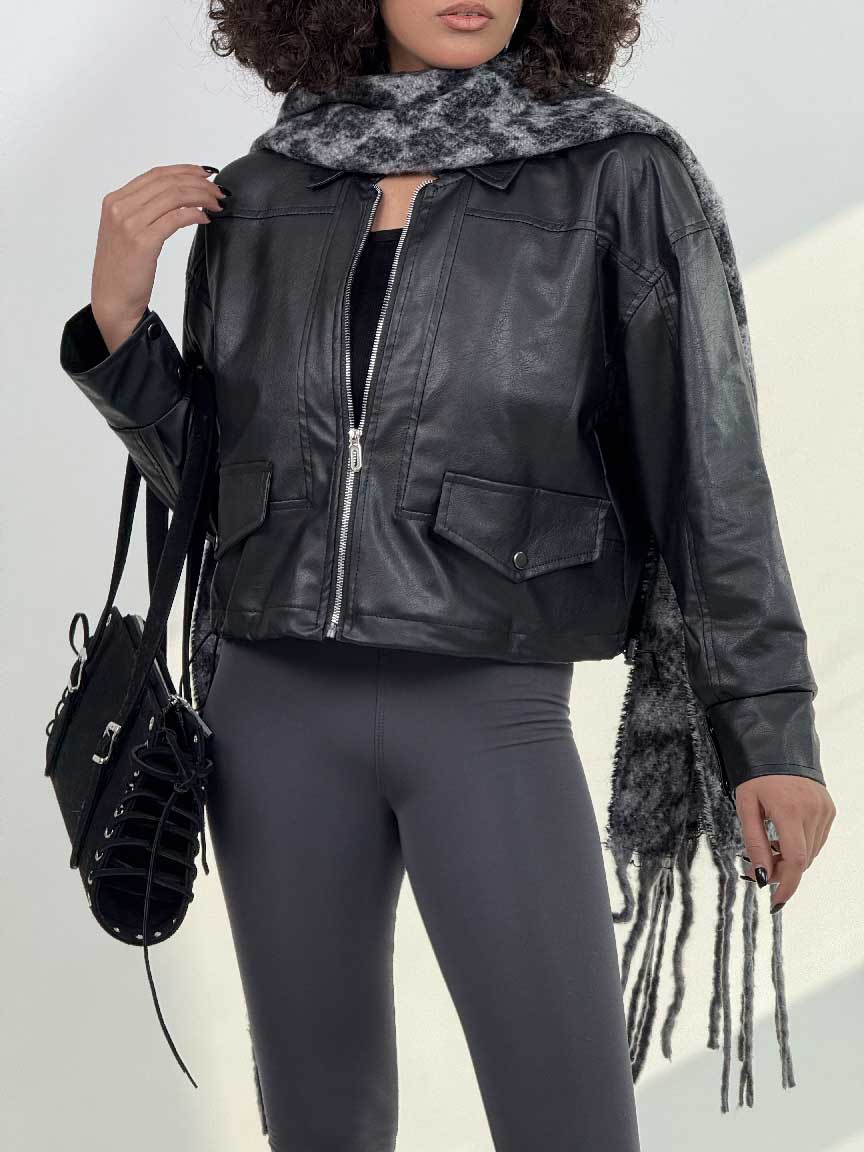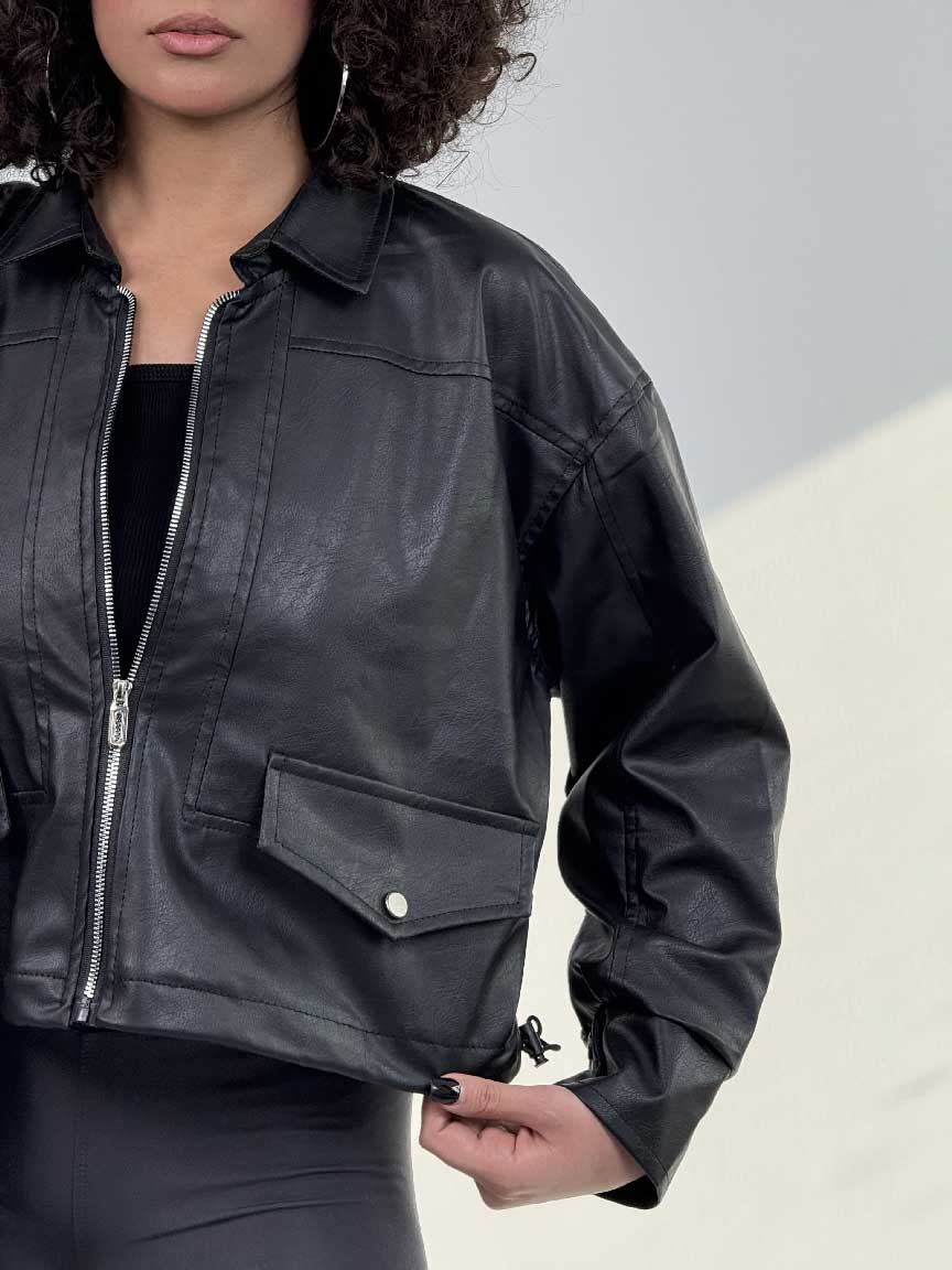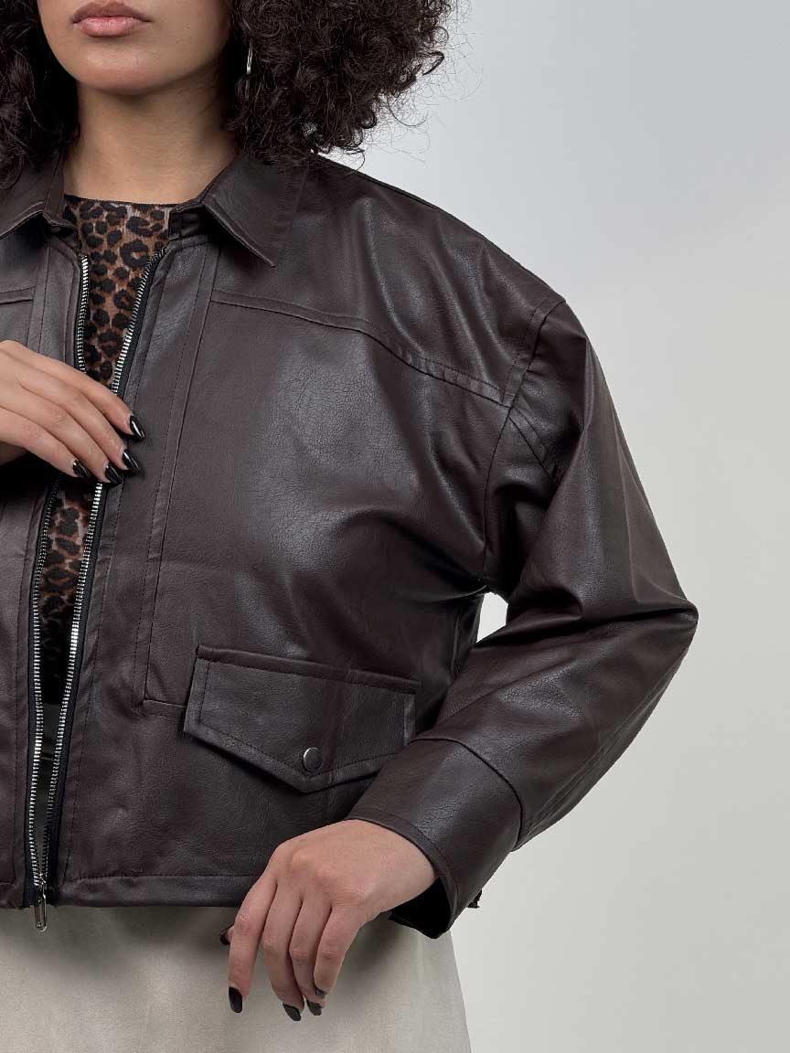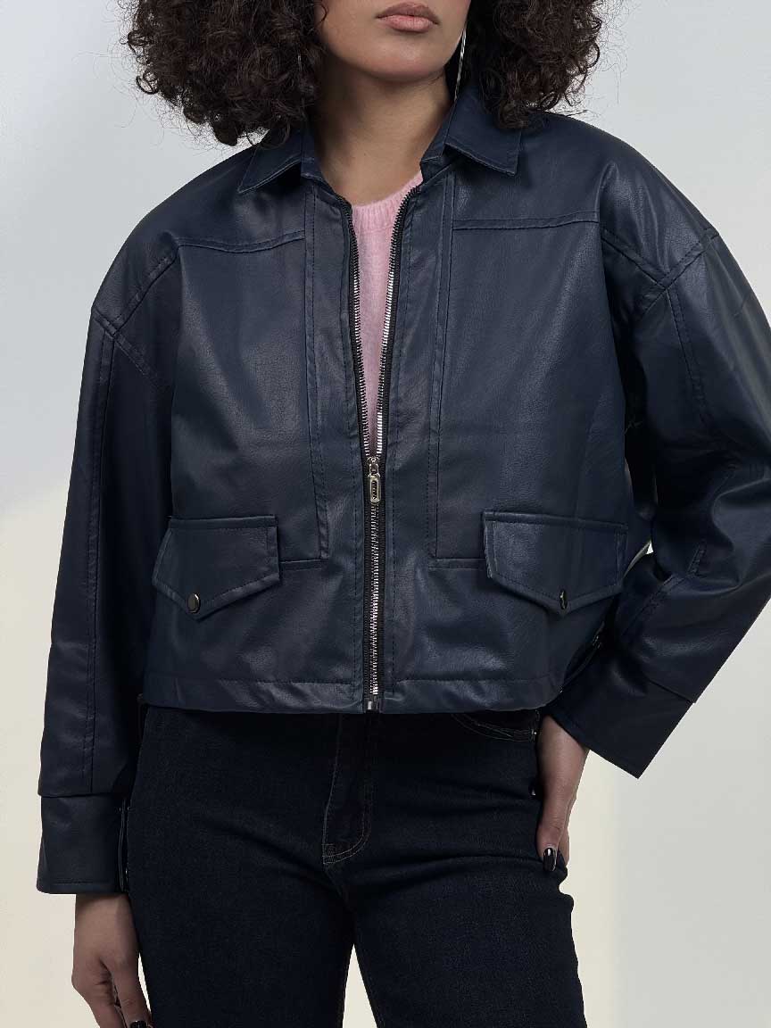 - سوییشرت چرم طرح جیب کد 201018