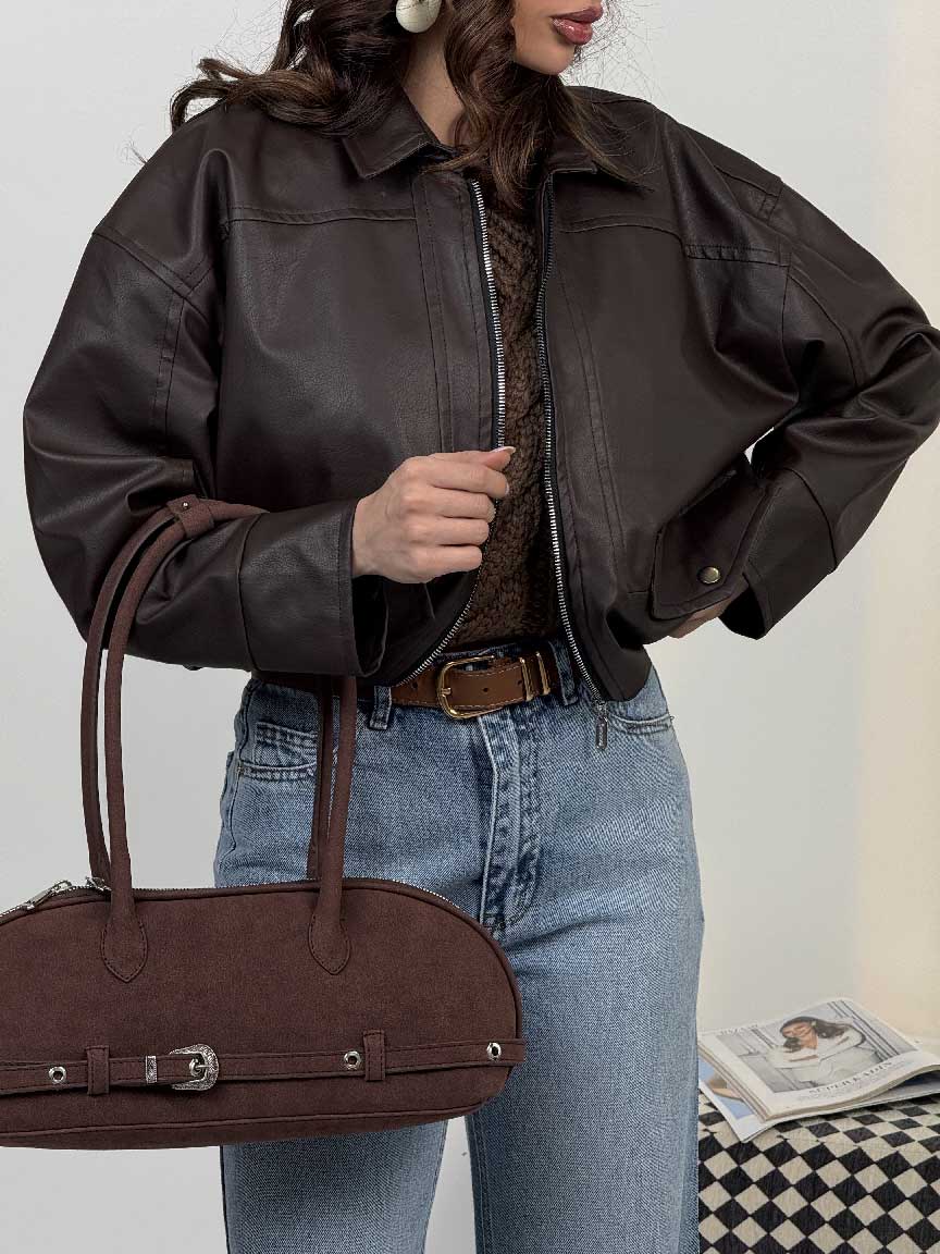 سوییشرت چرم طرح جیب کد 201018