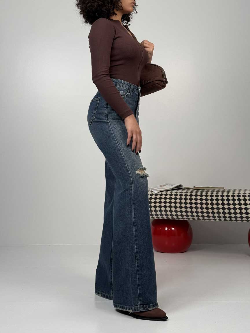شلوار جین سوپر بگ زانو زاپ کد 102127