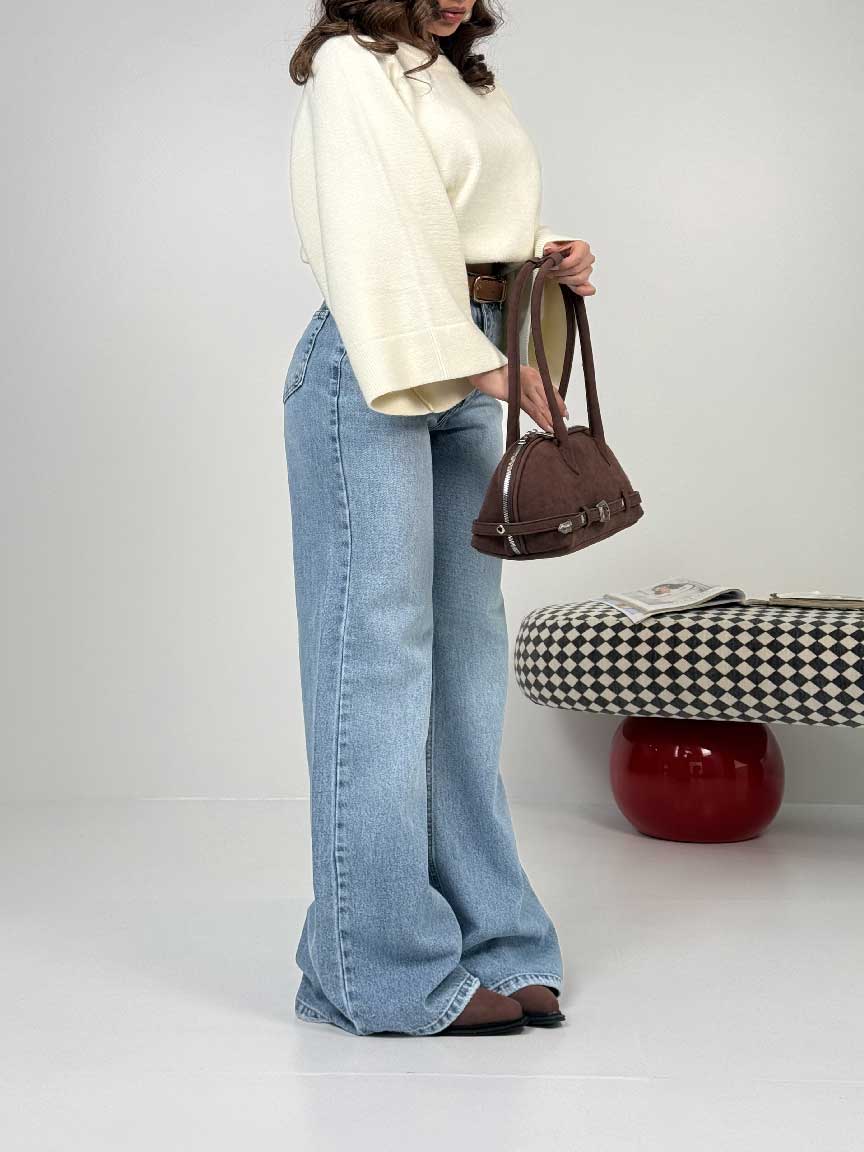 شلوار جین سوپر بگ زانو زاپ کد 102127