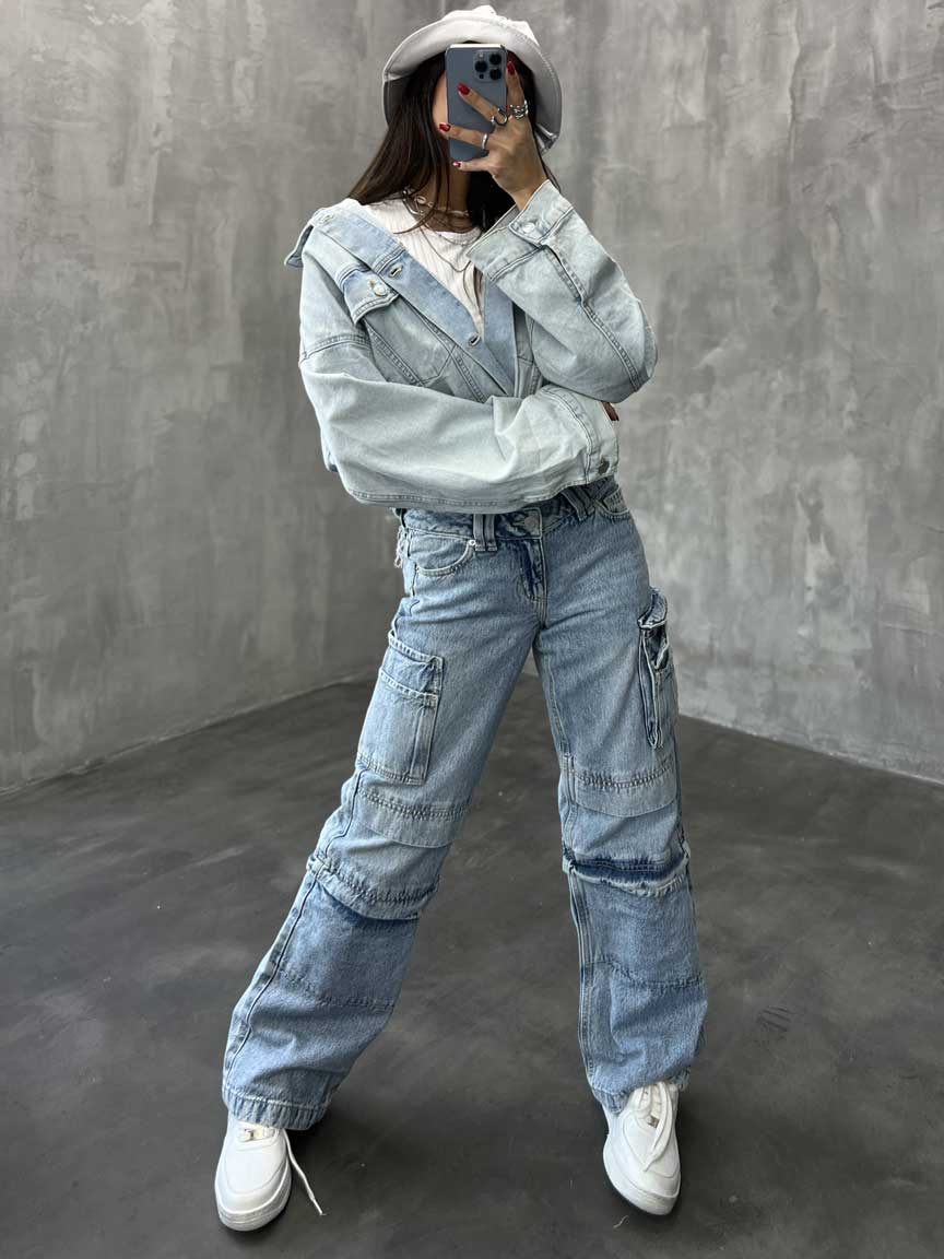 - شلوار کارگو جین زانو باز کد 100657