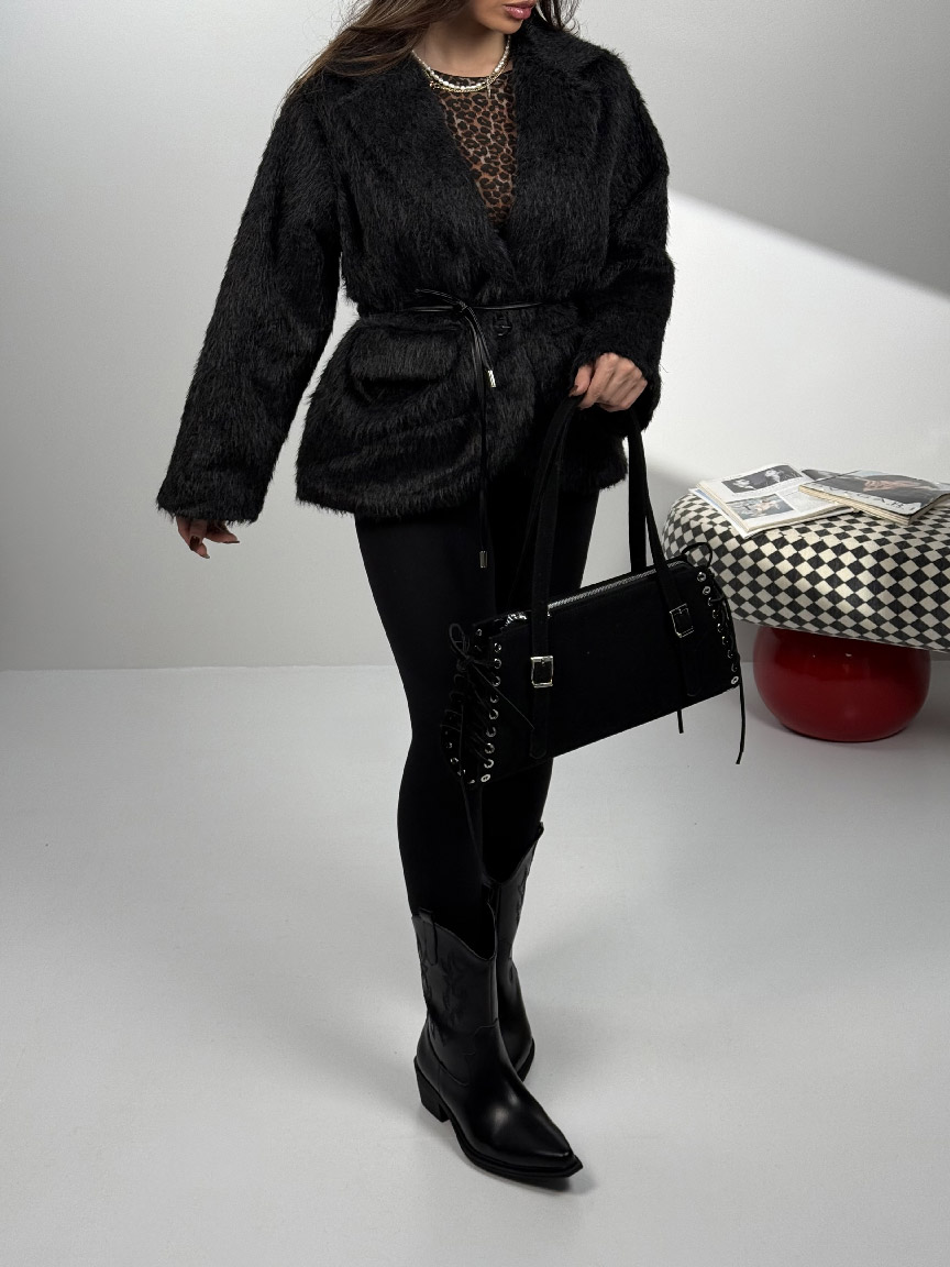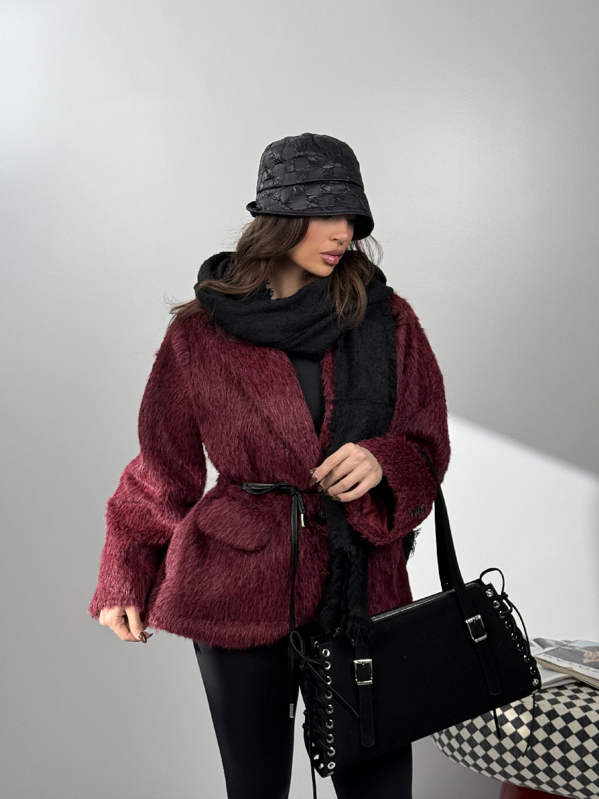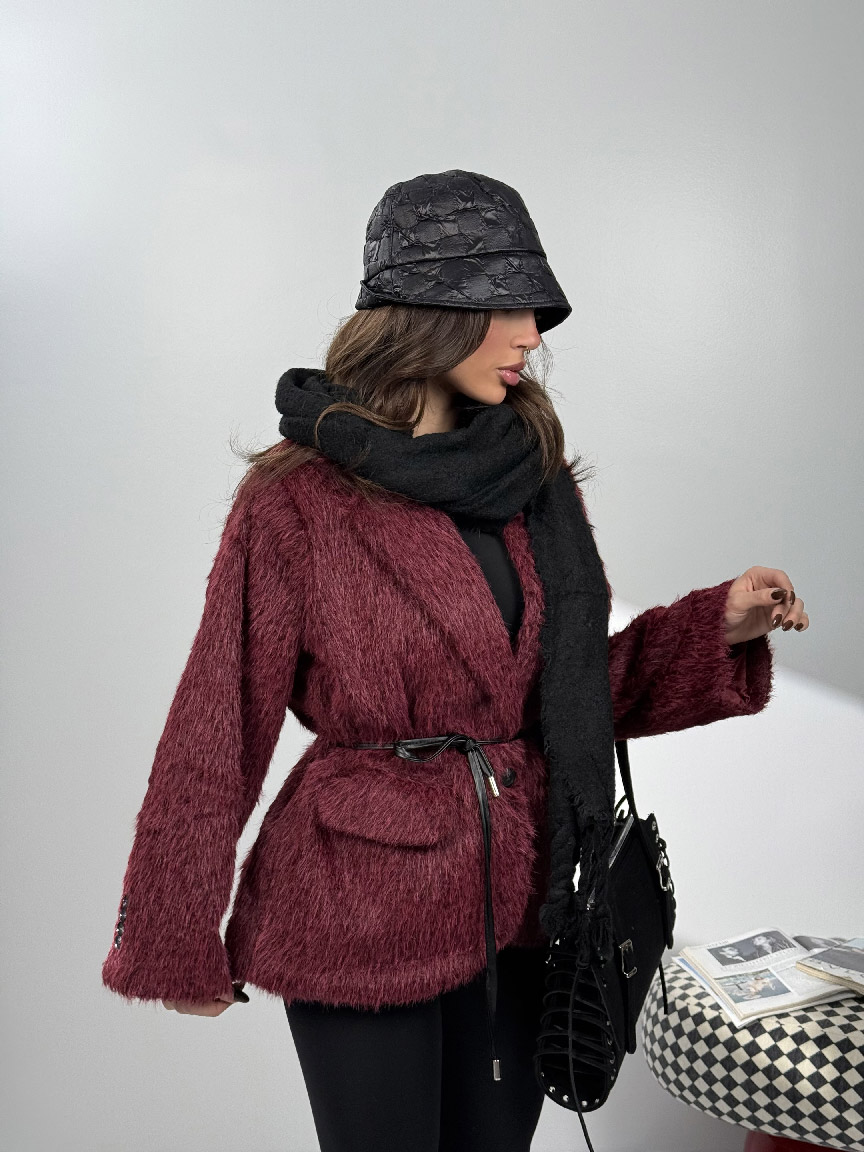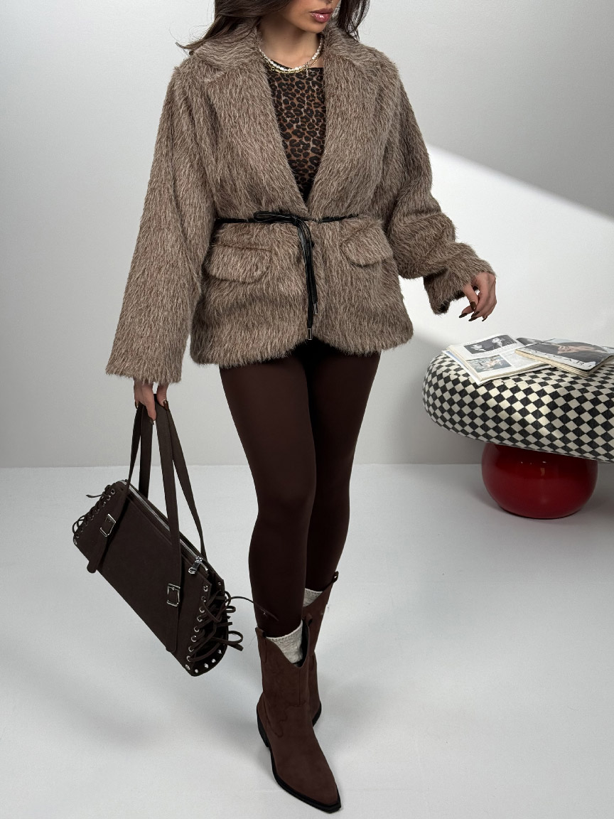 کت خزدار کمربندی کد 120385