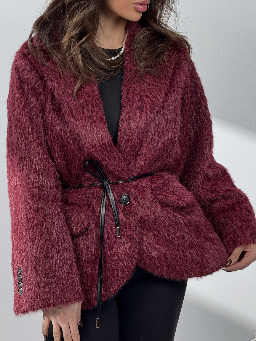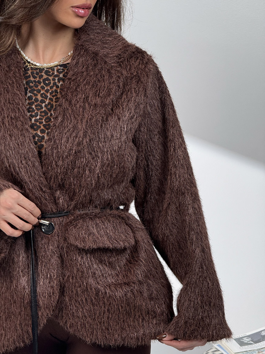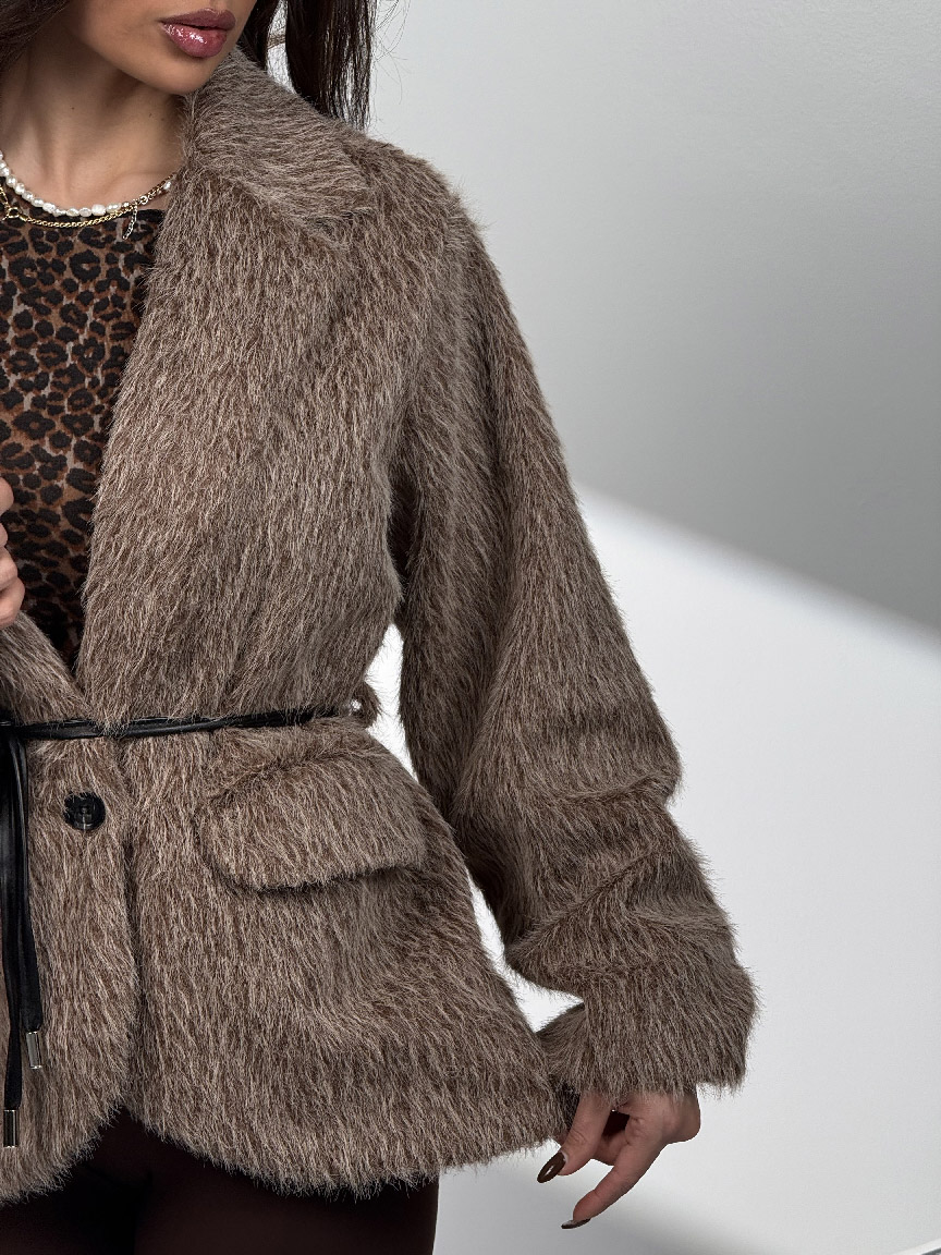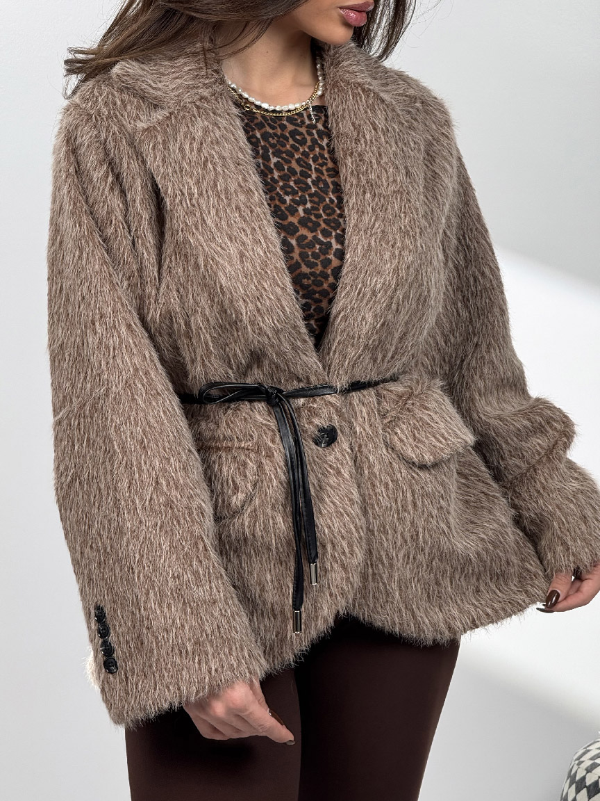 • کت خزدار کمربندی کد 120385